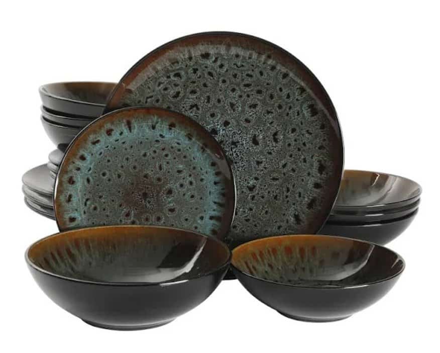 This stoneware porcelain dinnerware set with an antique finish rim is super unique. It creates the…