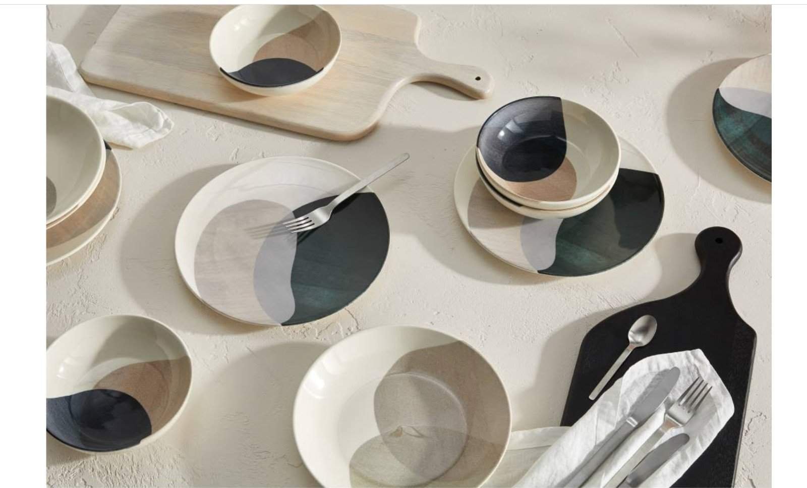 Home trends Dinnerware, one Set of 12 pieces, Service for 4, Black & Grey stripe. Dishwasher…
